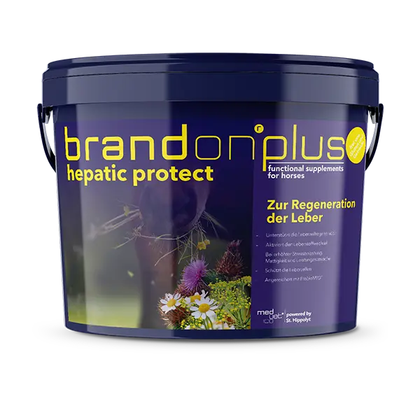 De lever is het centrale stofwisselingsorgaan van het organisme. Zij is verantwoordelijk voor de productie van vitale eiwitten voor het nutriëntengebruik, voor de productie van gal en de afbraak en de uitscheiding van stofwisselingsproducten, medicamenten en gifstoffen. Bedorven voer, medicijnen, giftige planten of schadelijke stoffen uit de omgeving kunnen de lever beschadigen en als gevolg daarvan de gezondheid van het paard in gevaar brengen. Brandon® plus Hepatic Protect ondersteunt de complexe leverstofwisseling en het herstel van het weefsel van de lever.
